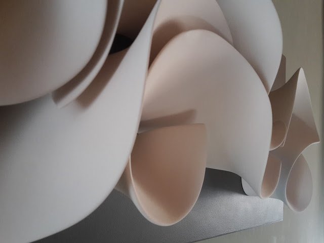 The ceramic wall art collection by Vasso Fragkou expresses the fluidity of the medium on a grander scale, evoking a sense of movement with rhythmic, overlapping waves that are frozen in time. The same shape and form if executed using another material would instil a markedly different feeling in the beholder; imagine the undulating waves using paper or fabrics, and you will appreciate the elevated elegance brought about by the use of clay. The gently overlapping layers of clay set against ethereal lighting establish a soothing ambiance for the entire room.