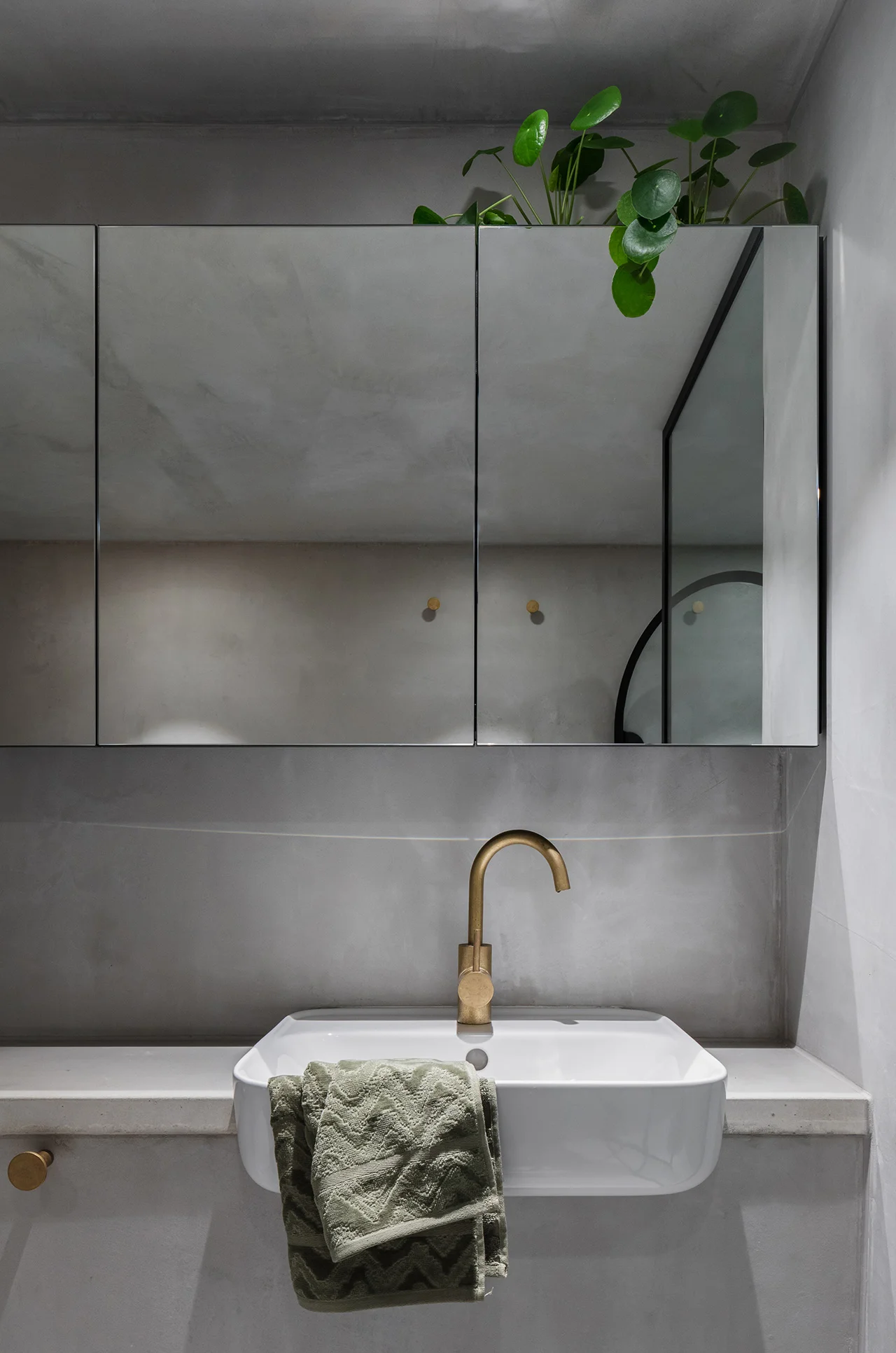 This Camperdown apartment’s deliberate use of rendered finishes and rejection of ornamentation gave it this name. The project was designed for a couple, both design professionals, seeking a minimalist lifestyle with an interior to match. The result was a home that is intimate yet utilitarian. Inspired by Brutalism and the local warehouse vernacular, extruded geometries and moody tones result in a minimalist and precise interior.