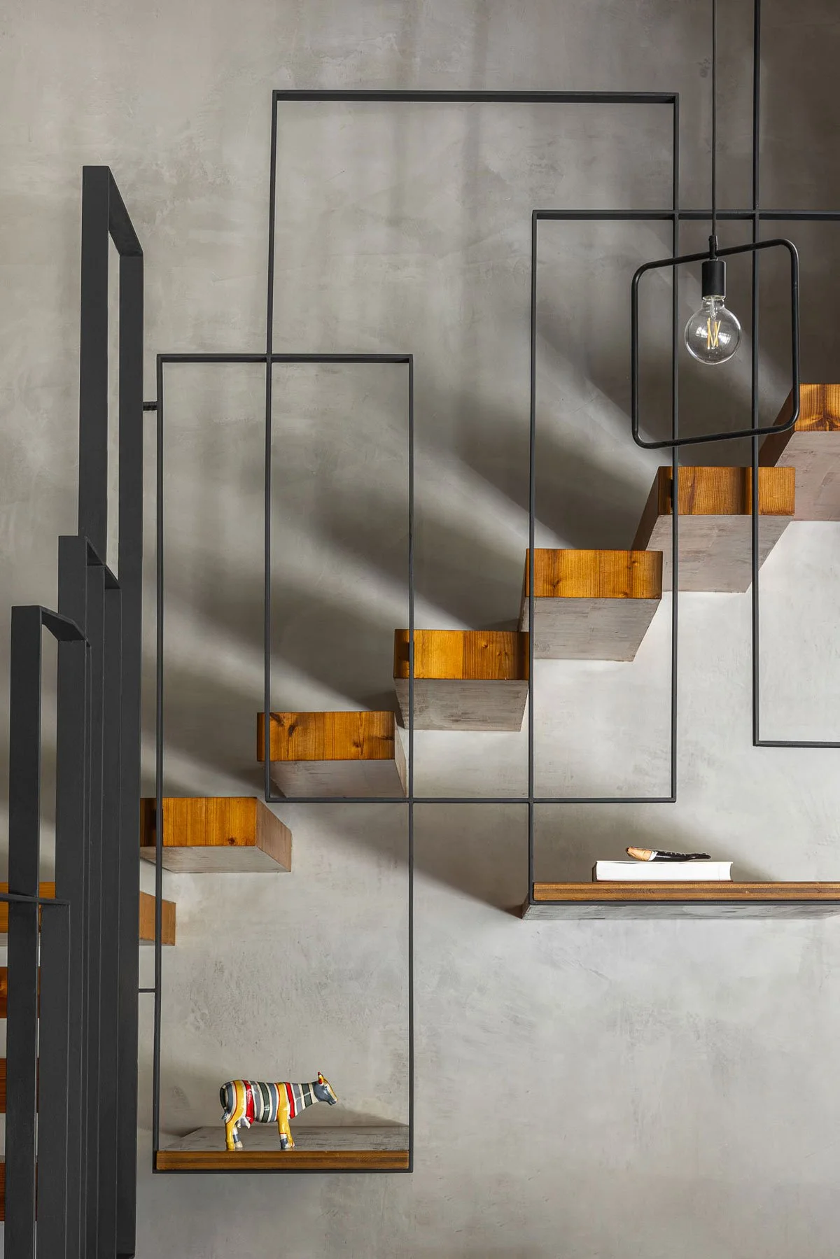 This was the narrative that started building the design process to connect all the interior spaces. The exterior of the home provides a higher level of privacy given the volumes do not let guests see inside. Although the facade may feel solid and impenetrable, beyond the main entrance and corridor, the first rays of natural light invite guests to the living room. The next steps reveal a high ceiling, which connects the upper floor through suspended stairs using the same wood as seen in the exterior of the house, and all the social and working atmospheres, including the exterior garden.