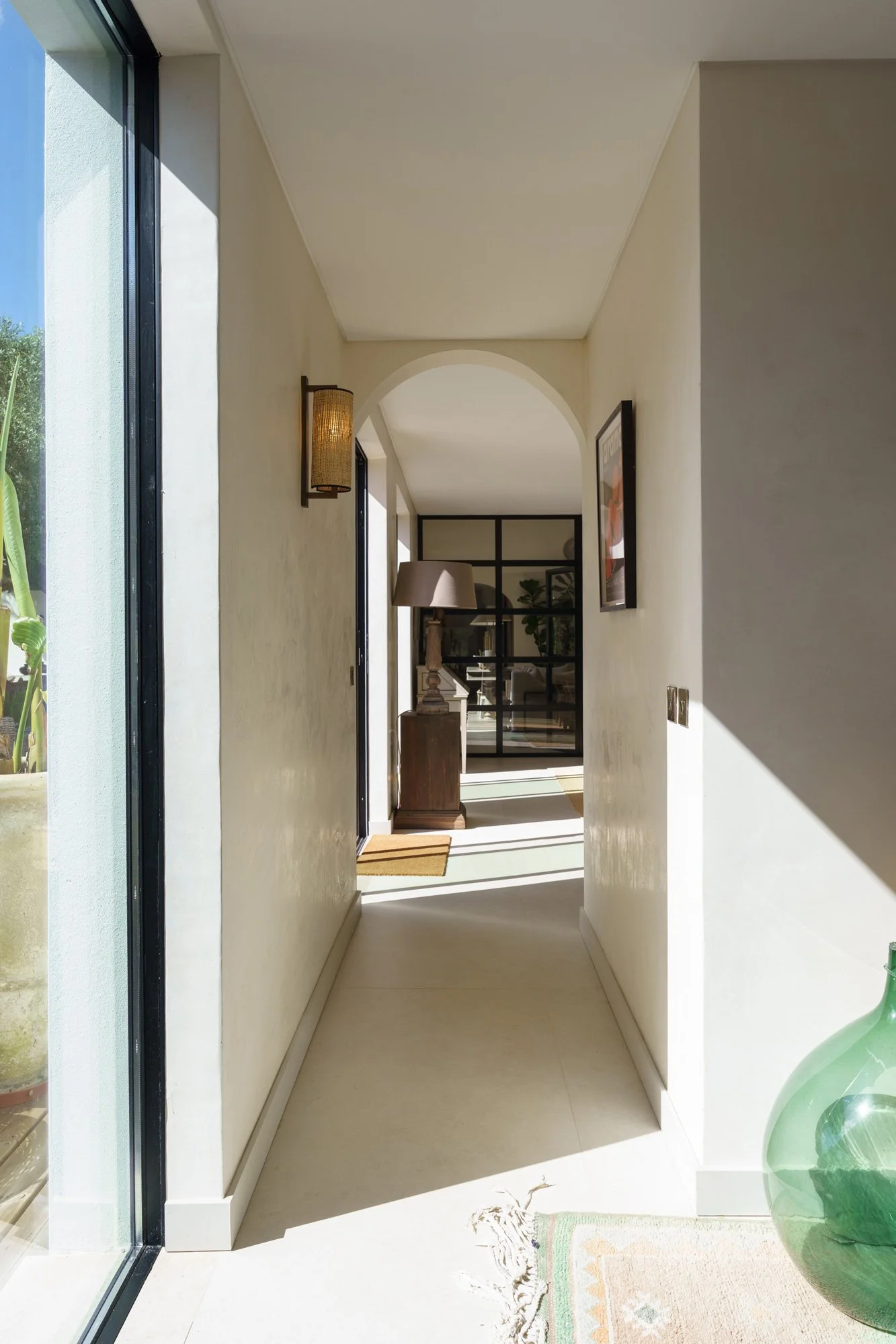 Designed by SabraB Architecture and brought to life through Cassia Bardoe’s soulful interiors, this residence redefines Mediterranean minimalism with an unmistakably British bohemian spirit. Every space feels sun-kissed yet grounded, a poetic balance of restraint and personality.