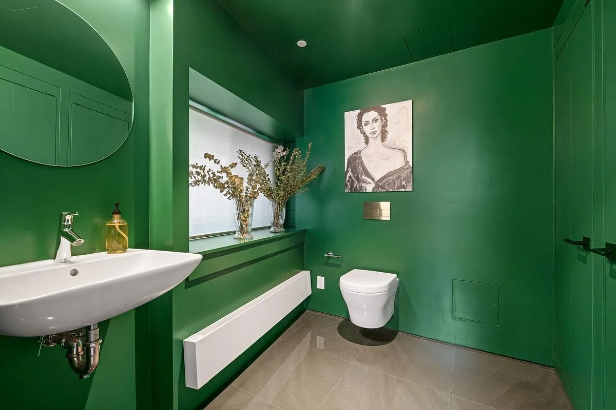 A bold green palette transforms the compact space into a statement of colour and cohesion.