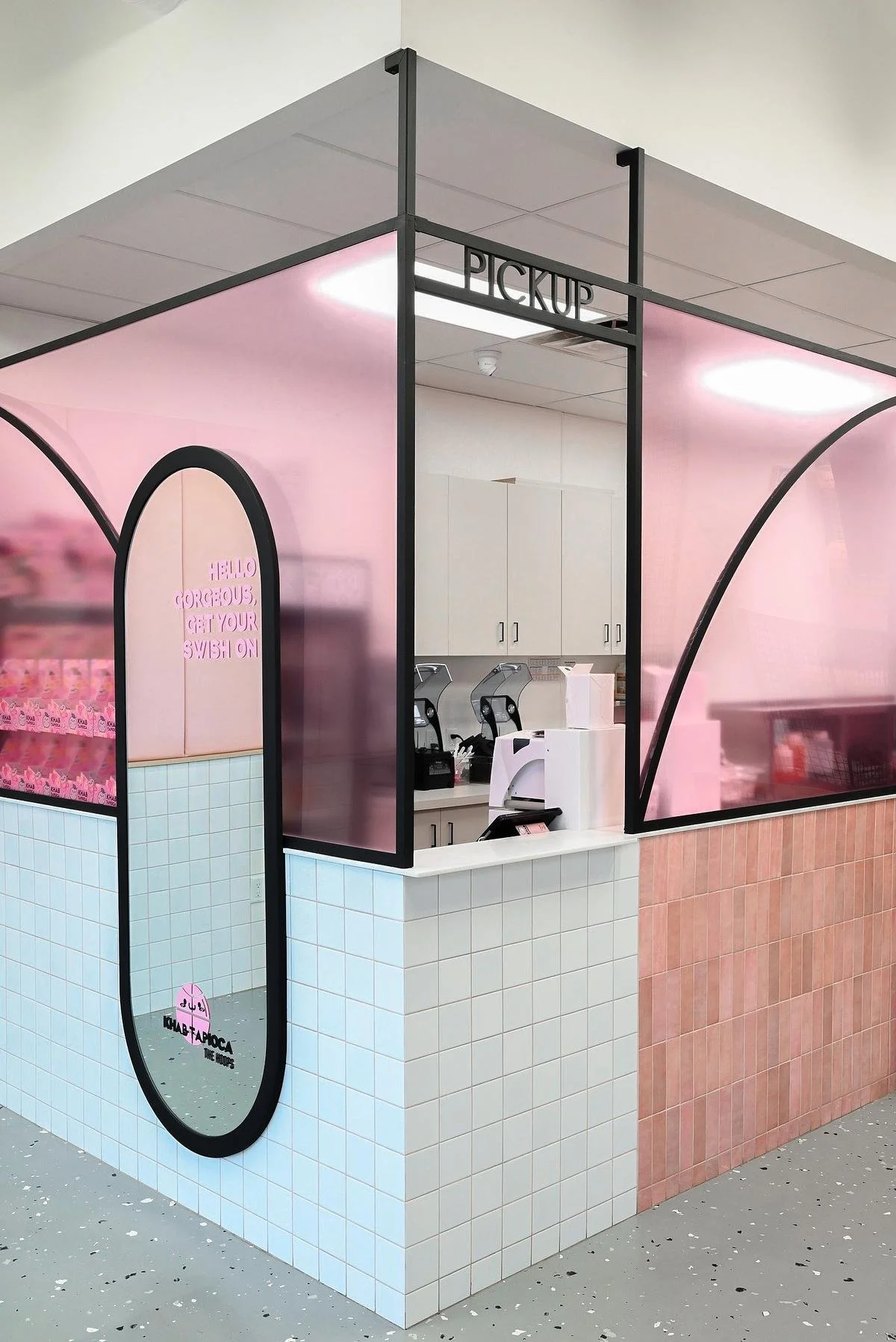 Through a haze of pink plexiglass, KHAB Tapioca blurs the line between play and performance, turning a modest 1,000-square-foot space into a design spectacle where sport meets sweetness.