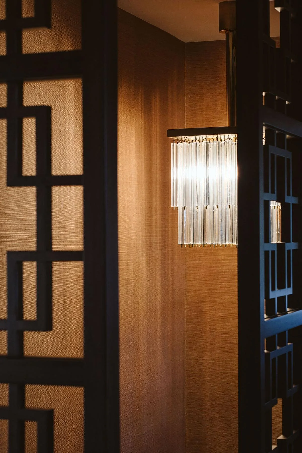 What holds it all together is material consistency. Brass appears in every level, from the chandelier fittings to the kitchen handles. Natural textiles recur throughout. Timber, whether fluted, turned, or left as a broad expanse of wall lining, provides warmth and continuity. The palette never strays far from earth: ochre, caramel, charcoal, cream, and the occasional deep navy that stops a room from becoming too comfortable with itself.