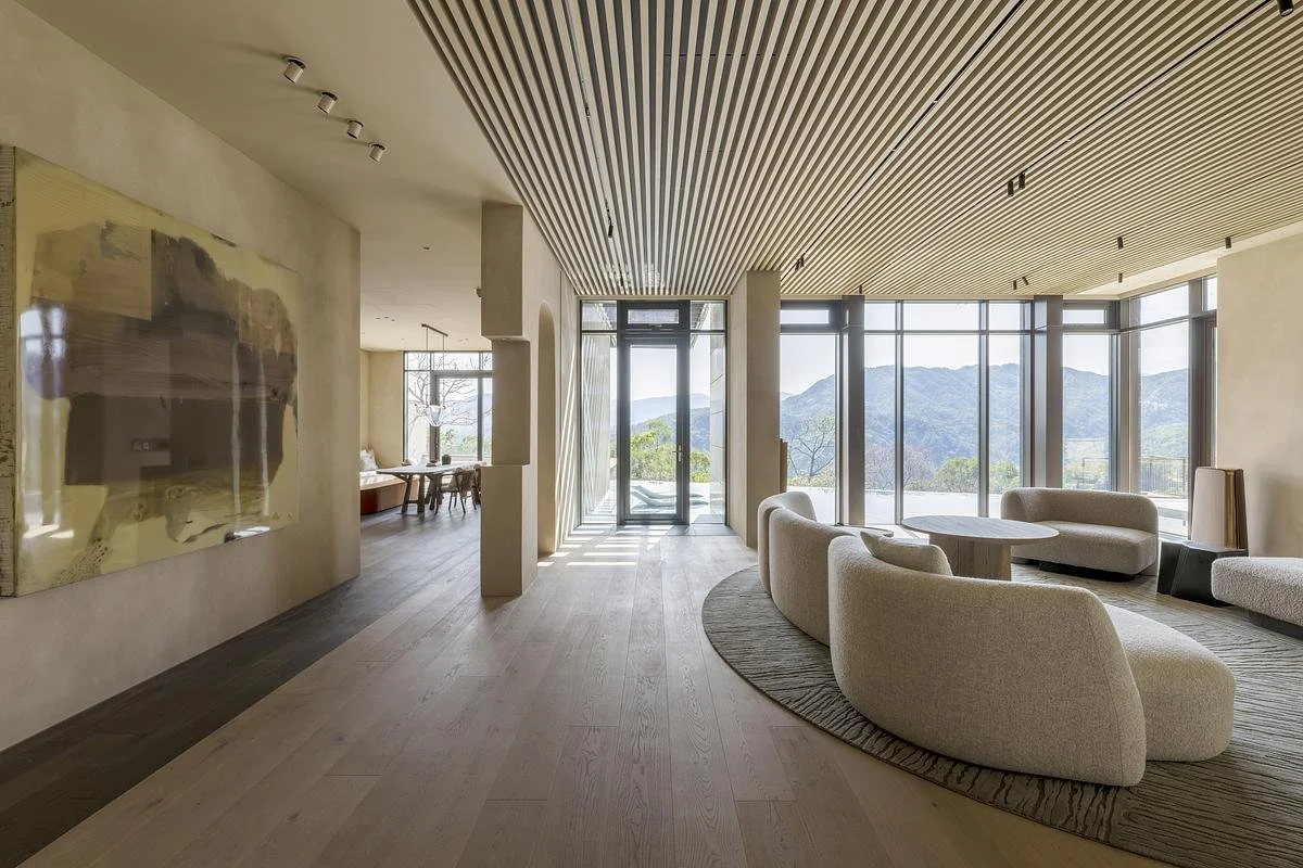 Perched in the mountains of Taiwan, this 990-square-metre private residence presented Peny Hsieh Interiors with a familiar but deceptively complex problem. The new-build shell had everything a dramatic site could offer: elevation, light, shifting mist, and long views across forested ridgelines. What it lacked was an interior logic to match. Spaces felt segmented. Transitions were abrupt. The relationship between the kitchen, the living areas, and the outdoor terrace reads as a collection of separate moments rather than a single, coherent experience. The house framed the landscape beautifully and functioned awkwardly.