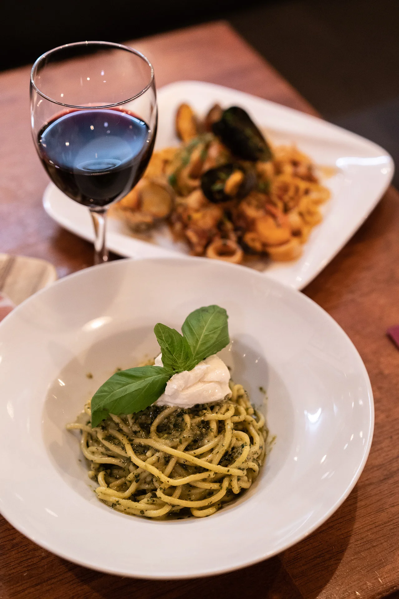 While we have yet to try the entire menu, we fell in love with the pesto and burrata pasta and the Spaghetti allo scoglio, aka “spaghetti from the coastline”.