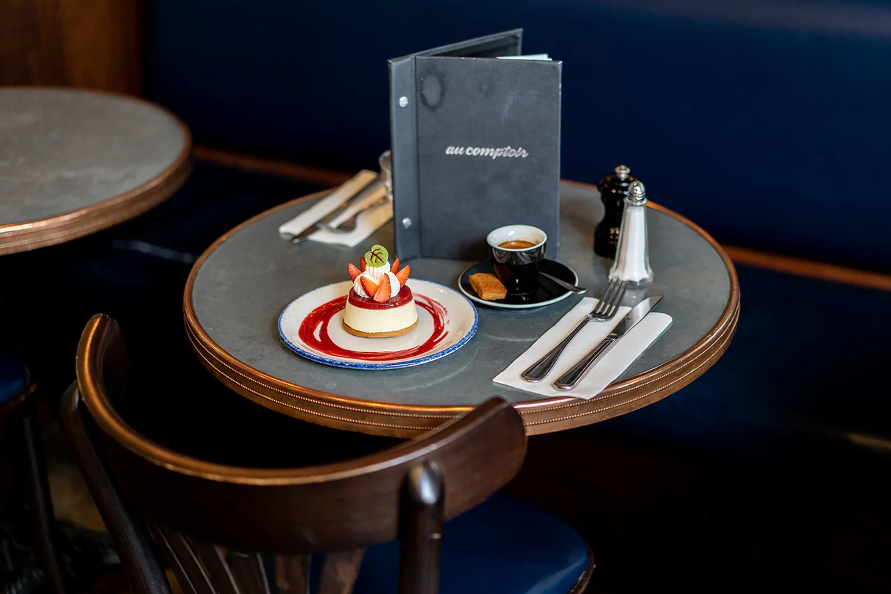 Max shared with us that the name Au Comptoir means 'at the counter', because there are two levels of pricing in Paris, if you sit down for a meal it's more expensive, whereas if you stand at the counter, you can hang out casually at the counter and pay less. We love the meaning behind the name, as it highlights the friendly, approachable vibe of the cozy neighbourhood café.