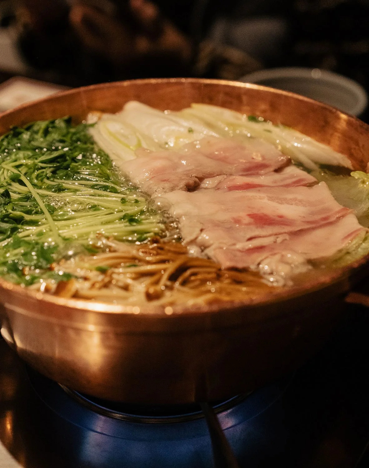 If you order a course meal for the table, the shabu shabu is presented in a shared pot.