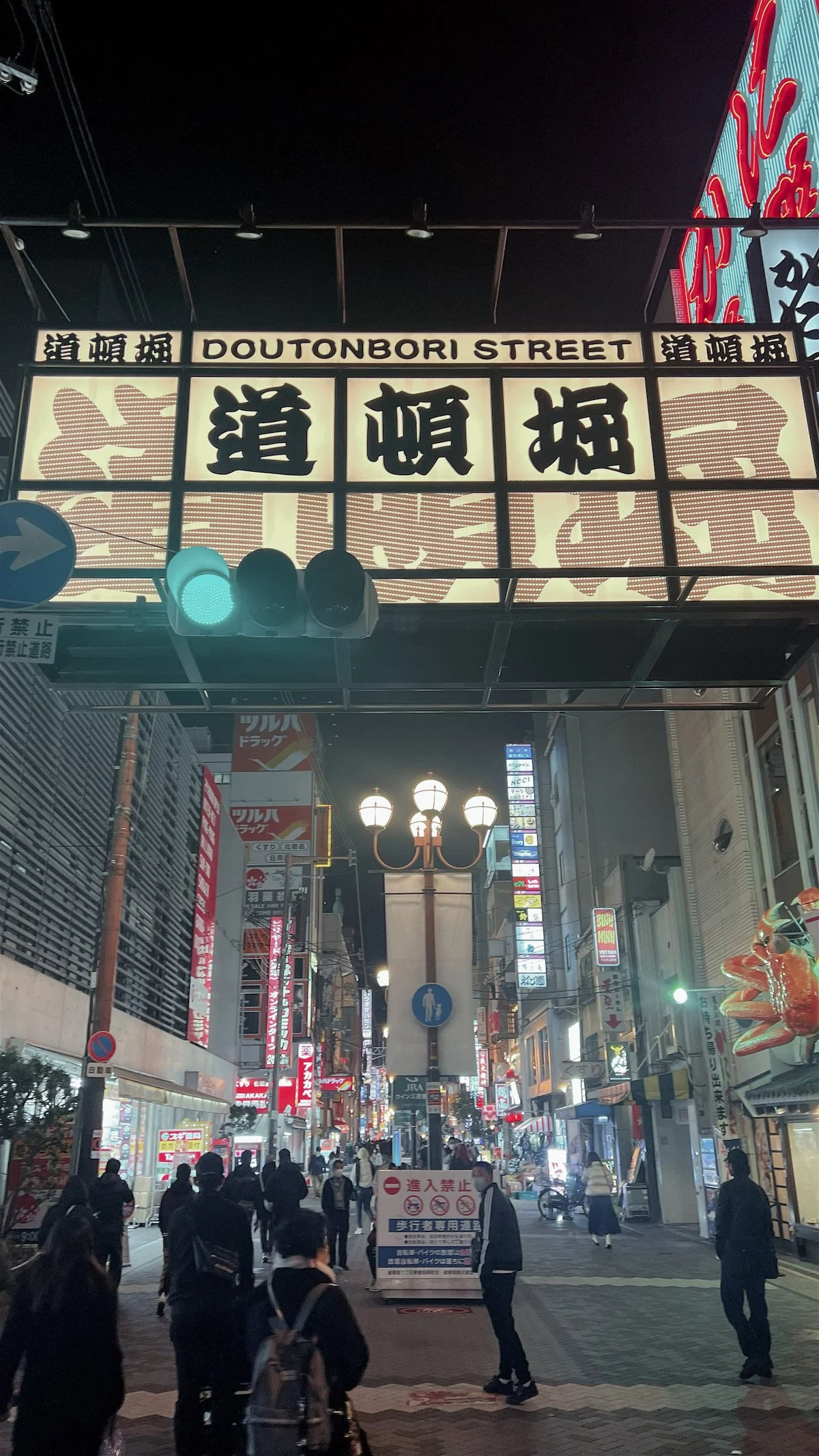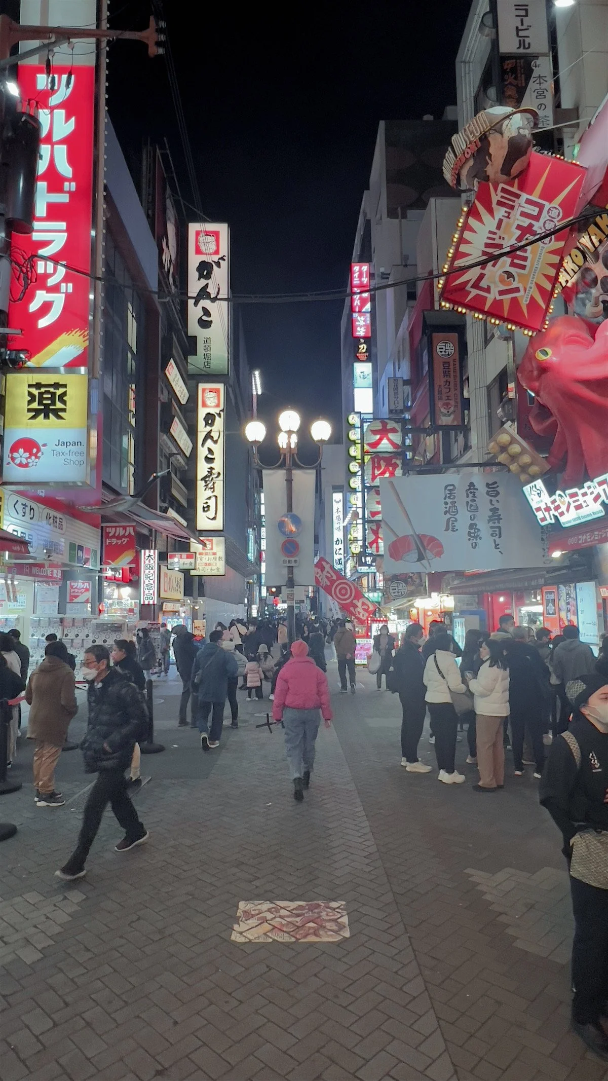 Dotomburi is a whole stretch of shops under a covered pedestrian walkway connecting Shinsaibashi with Namba Station. I categorize it under sightseeing because there is much to see. From people watching to the plethora of neon signs covering entire buildings, tourists are snapping photos everywhere. The most iconic stop for a photo op is with the famous Glico Running Man on the bridge spanning the Dotomburi canal.