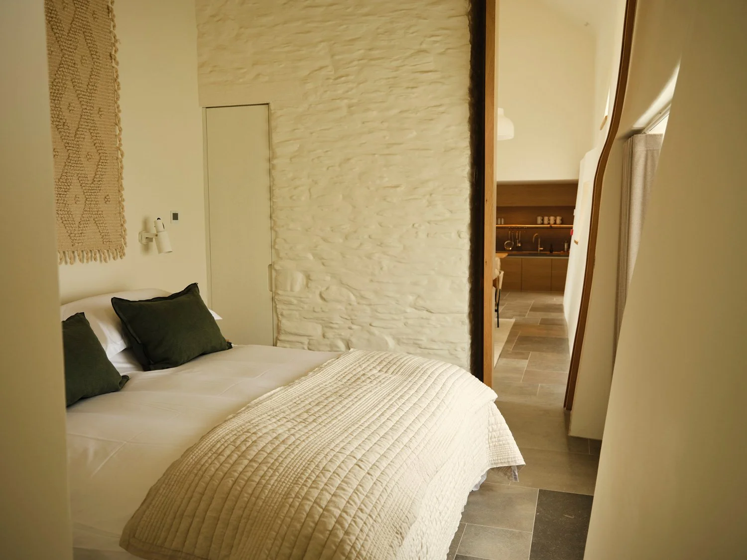 Warmth and serenity define the retreat's luxury suites. Super king mattresses in the luxurious suites are handmade by Devon supplier Natural Mat, using wool from Fowlescombe’s own flock of Manx Loaghtan sheep.